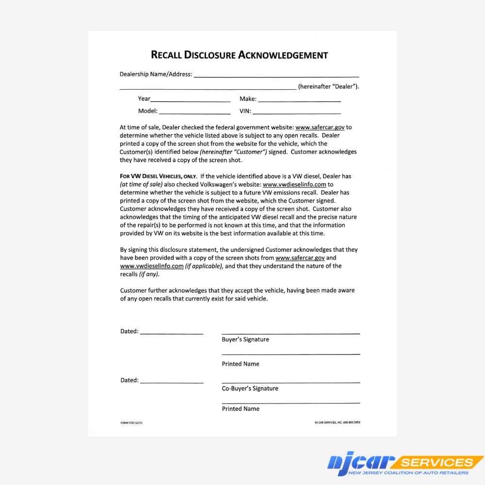 Recall Disclosure Acknowledgement